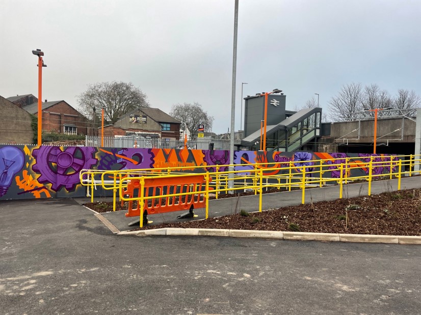 Over at Willenhall Station, the transformation of the platform wall is really taking shape. The design was developed in conjunction with a local primary school to capture the thoughts of where pupils live and its heritage with manufacturing locks.
