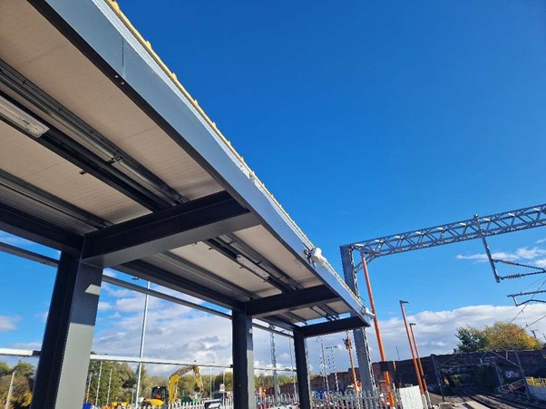 At Darlaston, fascias to the platform canopies have been installed to Platform 1 and speakers for train announcements have been fixed.